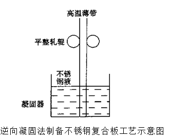 逆向凝固法制備不銹鋼復(fù)合板也屬于固<液相復(fù)合,但同模鑄法有所不同,其母板為普通碳素鋼(固相),復(fù)合層為不銹鋼(鋼液)。用該法生產(chǎn)出的為雙面不銹鋼復(fù)合帶。國(guó)內(nèi)外已進(jìn)行了用逆向凝固法制備不銹鋼復(fù)合帶實(shí)驗(yàn)室研究,取得了良好的效果。用逆向凝固法制備復(fù)合不銹鋼薄帶有以下優(yōu)點(diǎn):(1)制備的不銹鋼復(fù)合帶界面結(jié)合強(qiáng)度高;(2)可以實(shí)現(xiàn)連續(xù)化生產(chǎn),生產(chǎn)成本低,競(jìng)爭(zhēng)力強(qiáng);(3)生產(chǎn)流程緊湊,能耗低;(4)可以生產(chǎn)不銹鋼復(fù)合層小于8**的復(fù)合板。